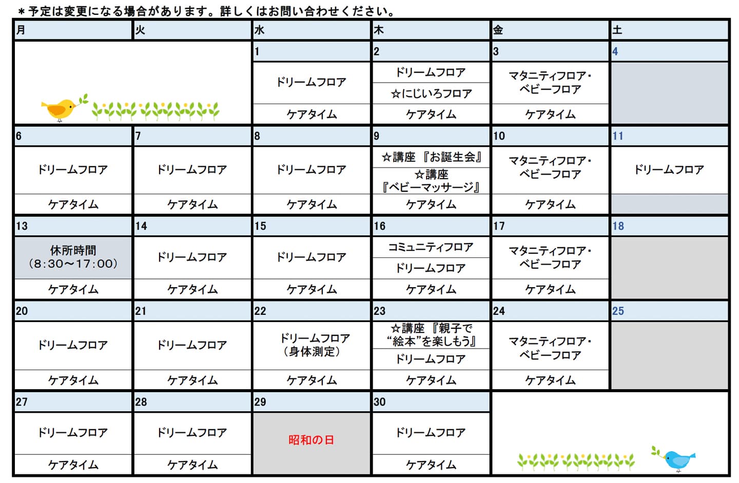 *ケアタイム(17:00~)の開催はありません。