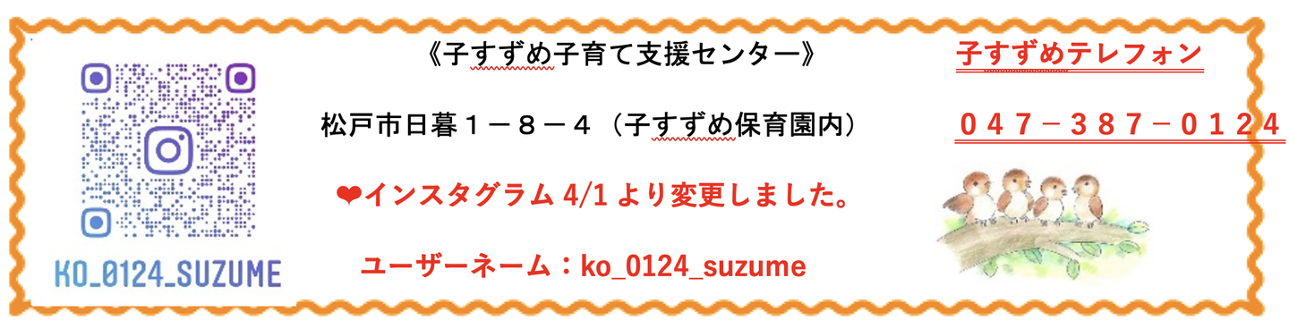 住所:〒270-2253 千葉県松戸市日暮1-8-4 子すずめ保育園内