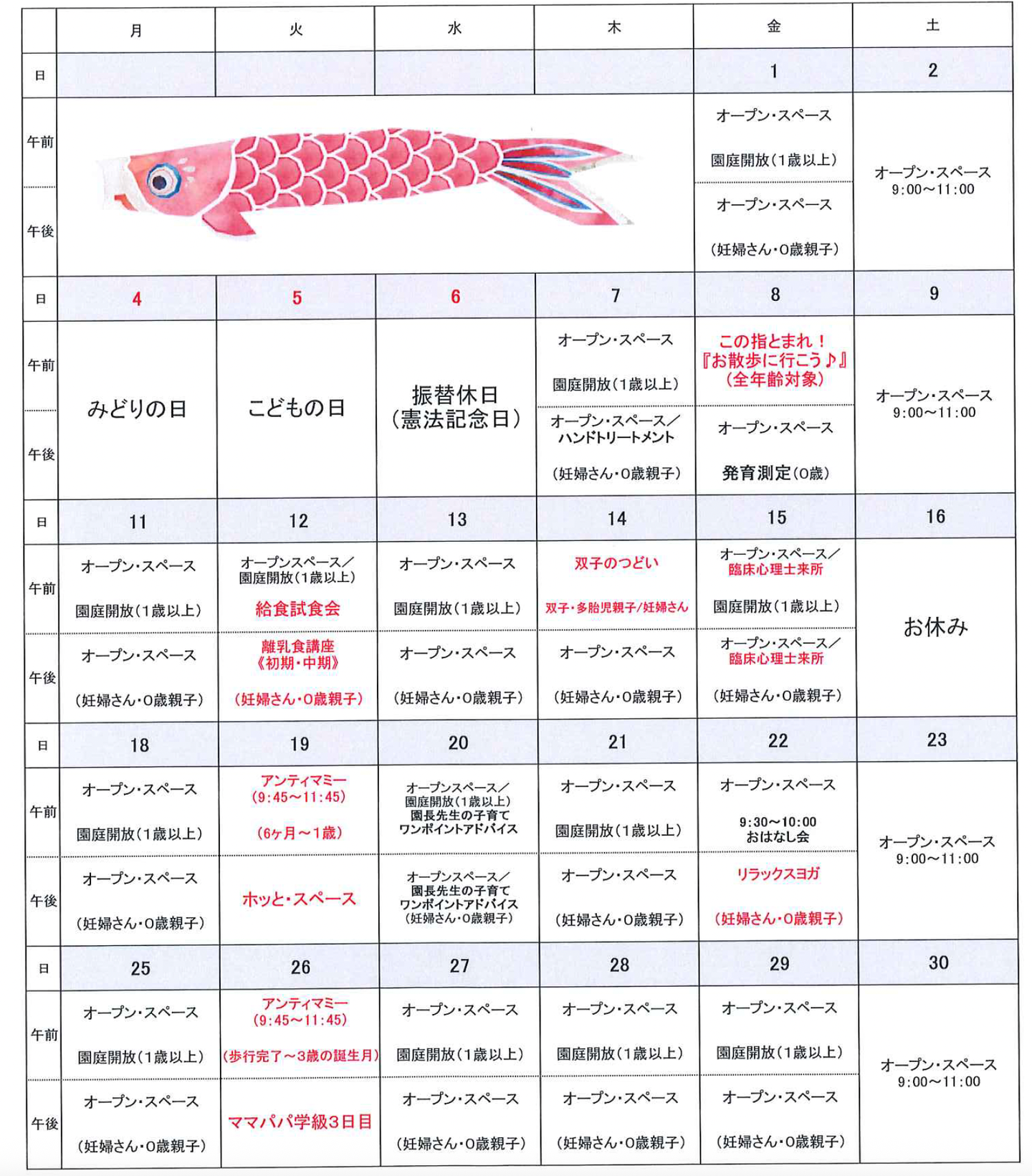 26日(火)9:45~11:45 1歳~3歳の誕生月まで