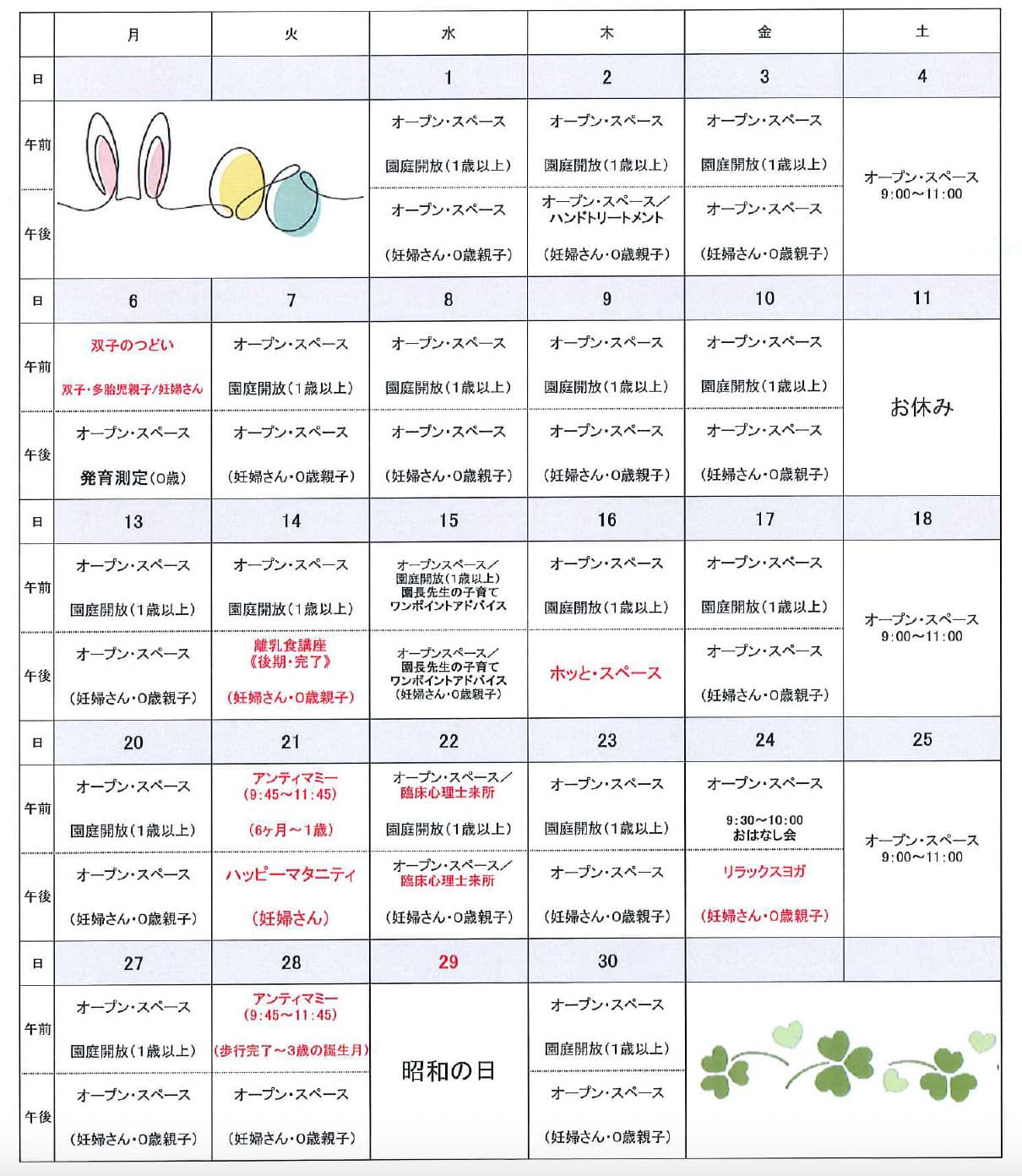 2026年4月の予定